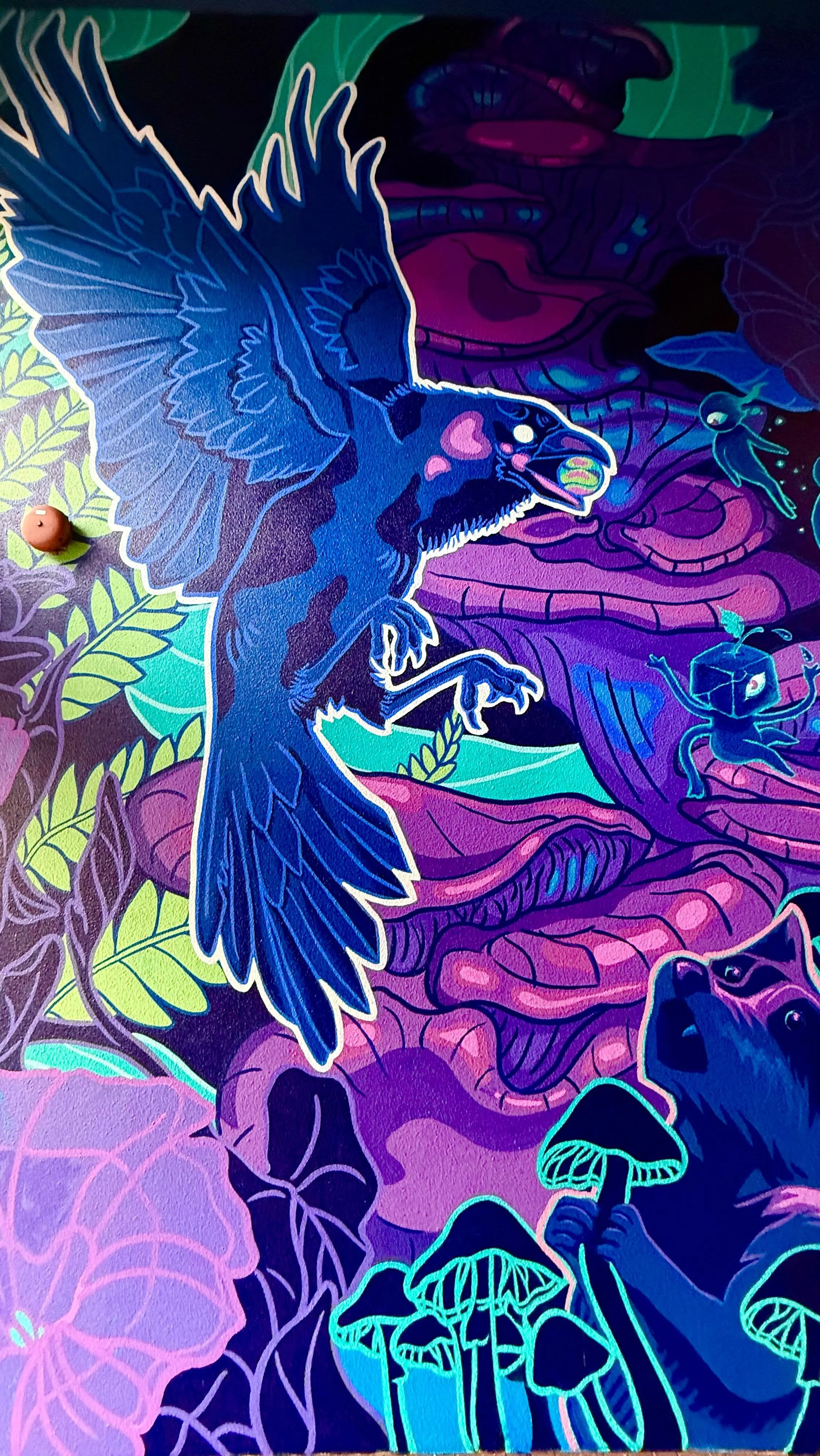 I am Thyla Arden, a muralist based in Caledonia, Wisconsin, known for my vibrant murals and whimsical paintings in both digital and traditional mediums. My work blends bold colors, intricate patterns, and playful symbolism to celebrate nature, myth, and imagination.